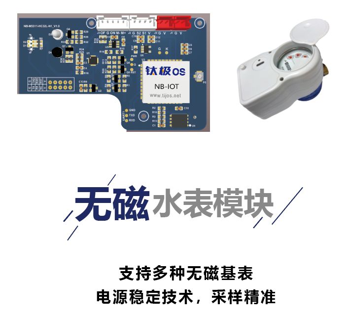 钛云物联是一家从事物联网终端设备开发的公司。公司核心技术在NB-IoT智能水表领域,致力于为客户提供支持各类基表的NB-IoT水表模块和解决方案,支持多家水司平台的通讯协议对接,为表厂提供从方案设计、物料选择、生产管理、平台对接、技术支持等一站式服务, 同时支持物联网产品按需定制开发服务。
